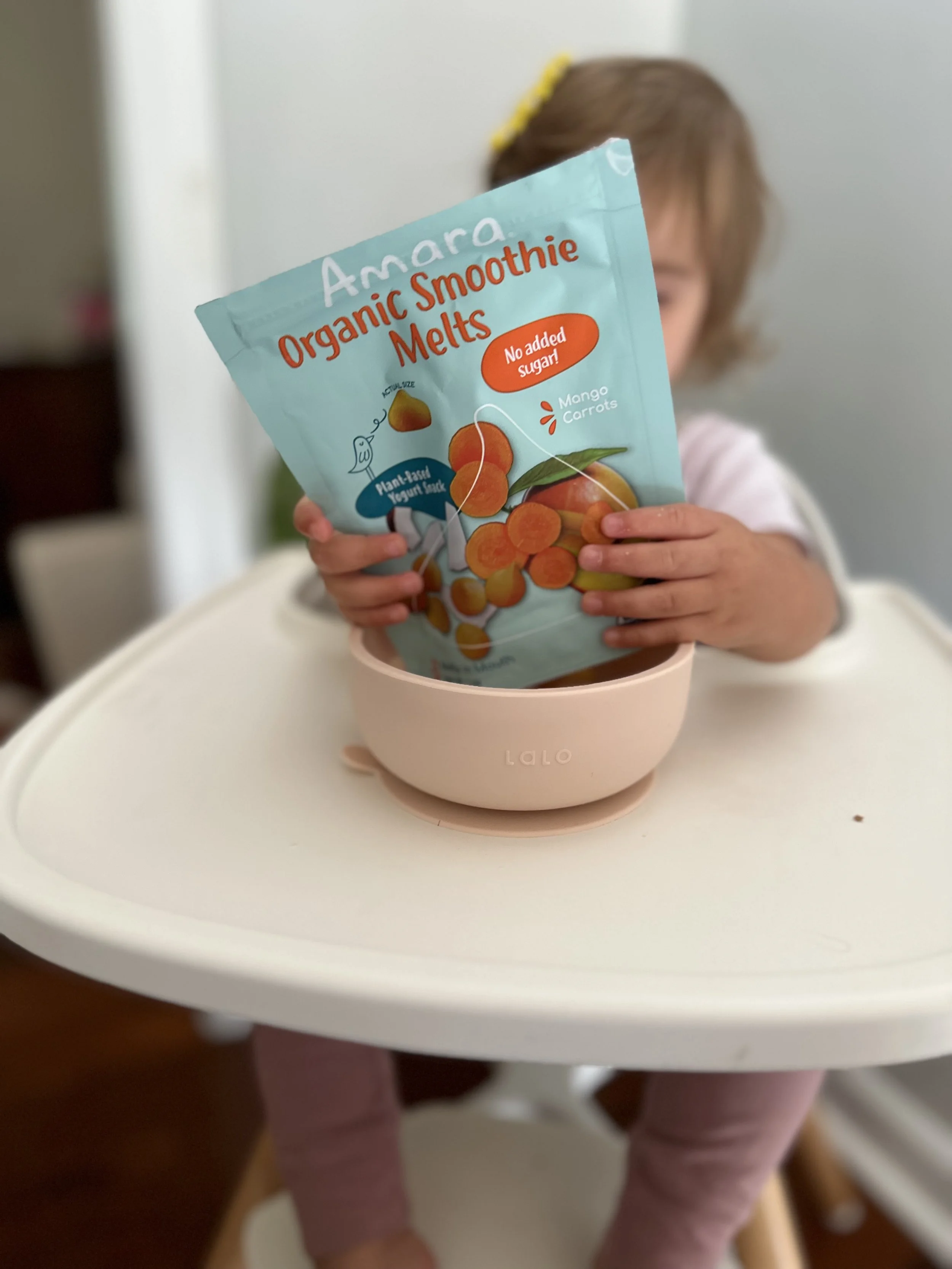 If there is one food my toddler ALWAYS go nuts for it is Amara’s Organic Smoothie Melts. As a feeding therapist and mom of 3, I have been serving them since my daughter was around 9 months and everyone from my 15month old to my 4.5 year old love them.